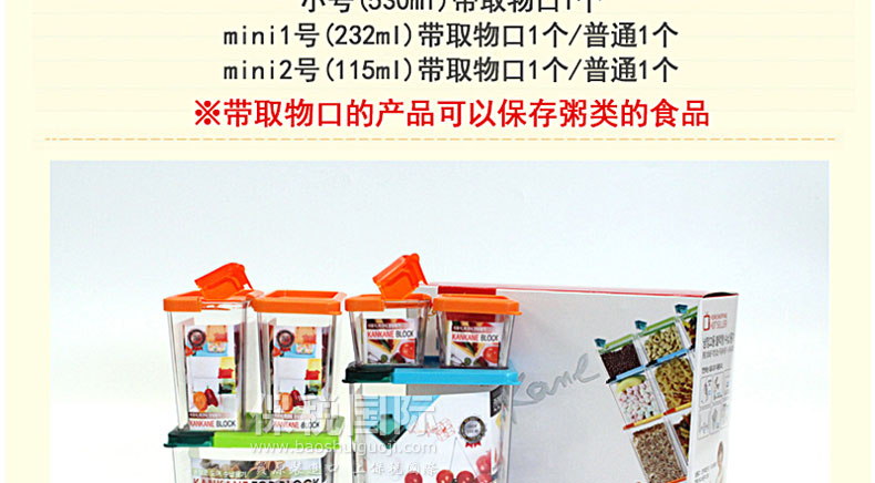 | 產品說明 | 韓國 KANKANE 魔術冰箱堆積收納盒6個裝—— ①韓國首創的Open Cap獨特開蓋設計,倒食材方便不沾手 ②高強度AS(-30℃~100℃)耐溫設計,積木式拼接,層層堆疊有效利用空間, ③底部U號設計耐循環效果好,可存放調味料,食材,飲料等,可多功能使用, ④頂封(蓋子)材質優良,不易損壞。磚塊設計存儲方便。 | |||