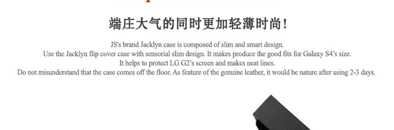 韓國JACKLYN 韓國真皮高檔手機皮套 正品直郵LG G2—— 1.采用100%真皮30年傳統手工精制,高端,大氣,上檔次。多功能,超薄而時尚的手機皮套。 2.纖薄面蓋,不易變形,經久耐用。 3.優質原料,無毒誤異味。 4.真機開模,孔位精確確保用戶使用方便 |
