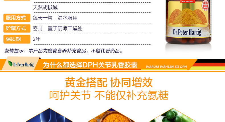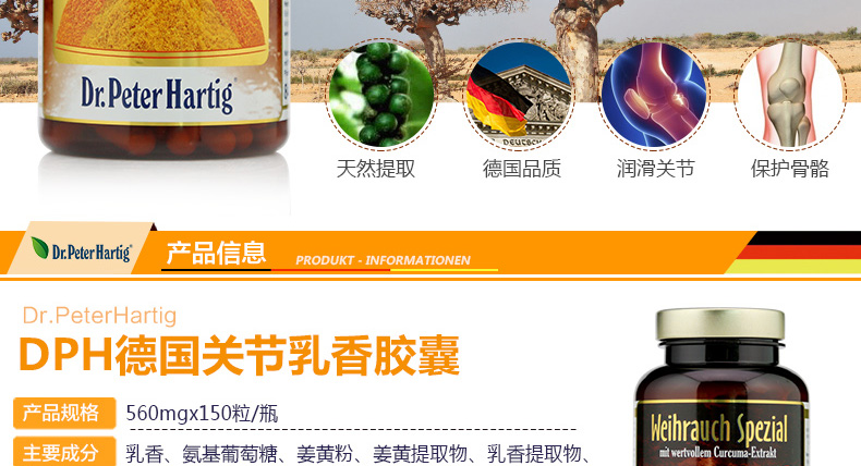 直郵德國DPH Dr.Peter Hartig乳香膠囊150粒 關節軟骨素氨糖維骨力 呵護關節緩解疼痛 |