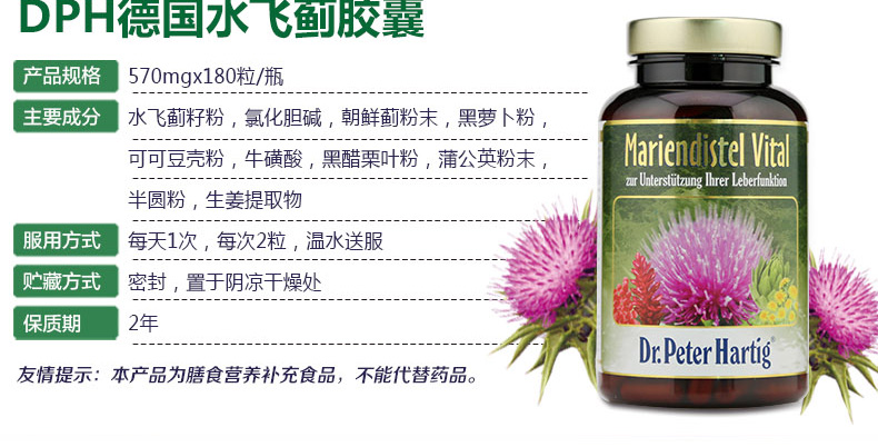 直郵德國DPH Dr.Peter Hartig水飛薊膠囊180粒 護肝增強肝功能 |