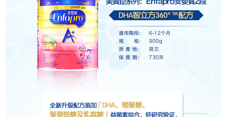 港版美贊臣Enfamil安嬰寶奶粉2段900g 營養好吸收 6-12個月寶寶適用 |