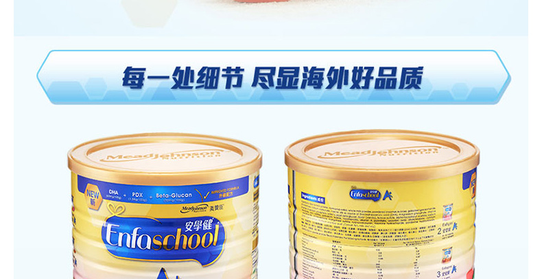 港版美贊臣Enfamil安學健5段奶粉 6-12歲兒童適用 1罐/2罐 口感綿密細膩易吸收—— 1、奶粉口感細膩綿密,營養(yǎng)好吸收。 2、智立方360配方奶粉,支持全腦發(fā)育。 3、6-12歲兒童適用。 |