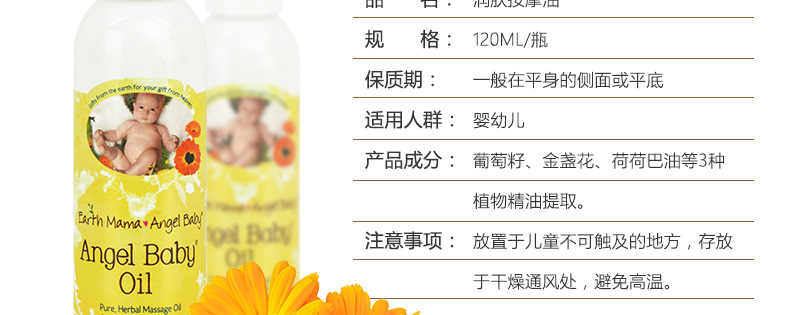 地球媽媽天使寶貝Earth Mama Angel Baby潤膚按摩油120ML 滋潤護膚 敏感寶寶也能用 |