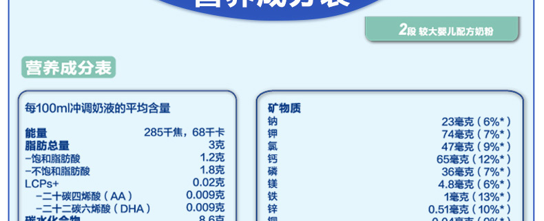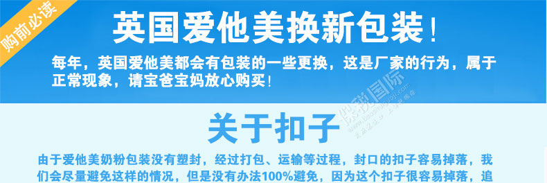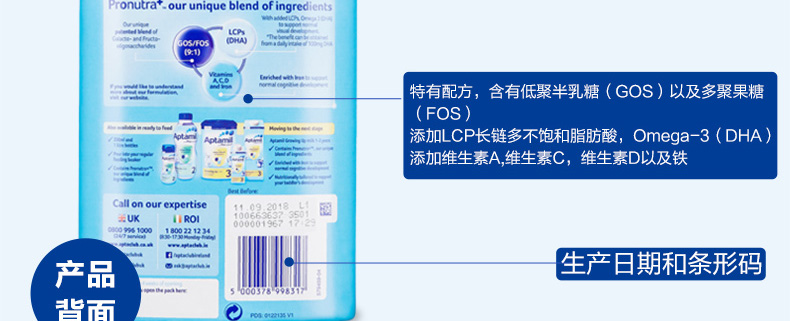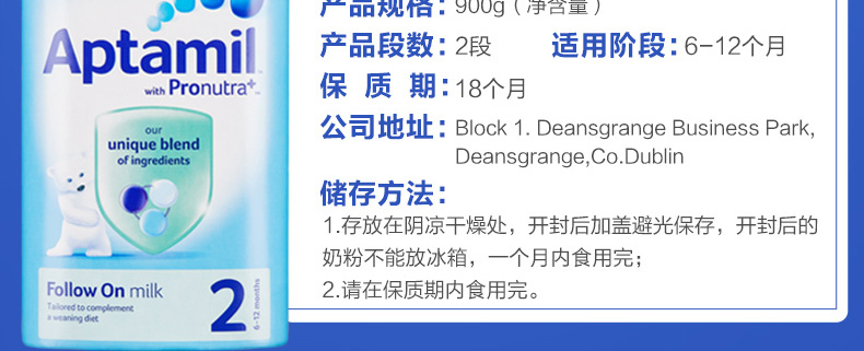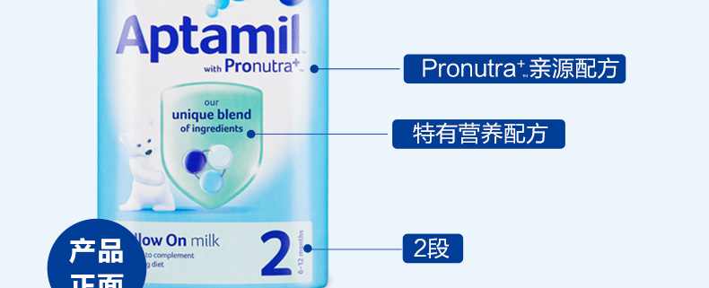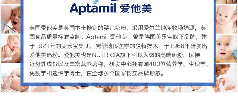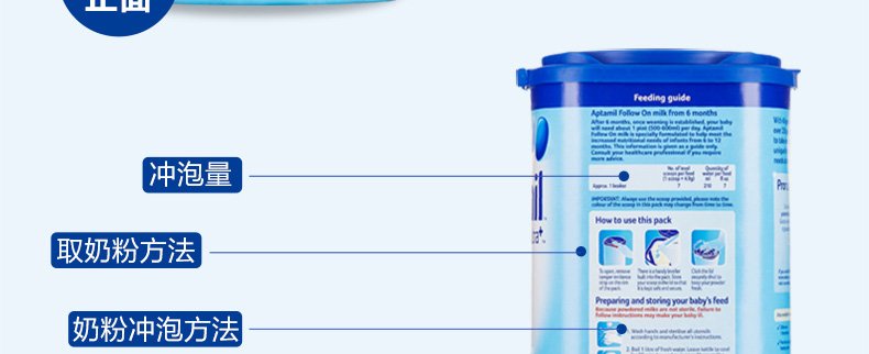 6罐裝英國愛他美新版2段6-12月進口嬰兒牛奶粉 Aptamil 900g—— ①富含鐵質和維他命D的奶粉,滿足寶寶營養所需,幫助促進寶寶的牙齒和骨骼發育。 ②含有益生元,促進寶寶體內的有益菌的生長,同時抑制有害菌的生成,提高自身免疫力,為寶寶的健康成長打下良好基礎。 ③能為寶寶提供健康的消化力,減少便秘的可能。 注:奶粉包裝更新換代頻繁,請以收到實物為準。 |