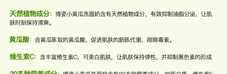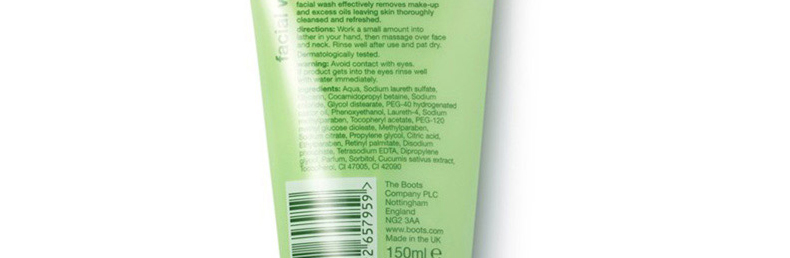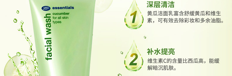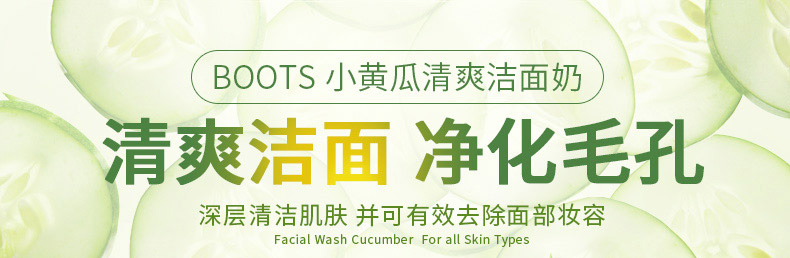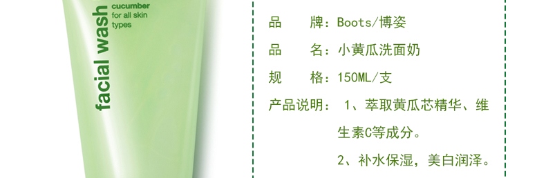 博姿Boots小黃瓜洗面奶150ML黃瓜潔面乳 補水保濕美白抗氧化 一支/兩支—— 1、萃取黃瓜芯精華、維生素C等成分。 2、補水保濕,美白潤澤。 3、抗衰老,抗氧化。 |