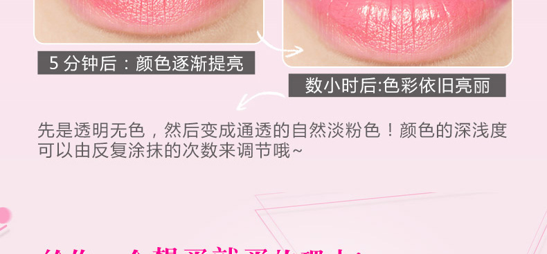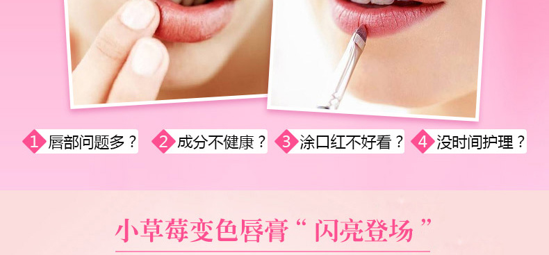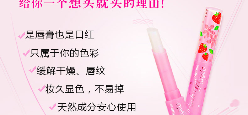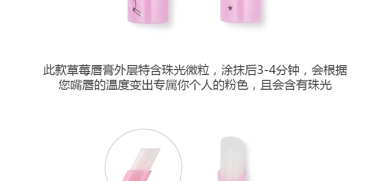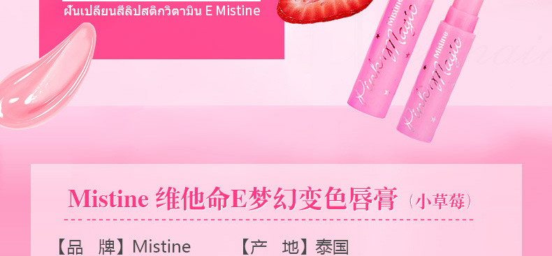 泰國Mistine美氏婷草莓變色潤唇膏1.7g 溫感變色 滋潤鎖水不油膩—— 1、水果植物精華,溫和不傷唇。 2、鎖水鎖色,滋潤不油膩。 3、感應溫度變化不同色彩。 |
