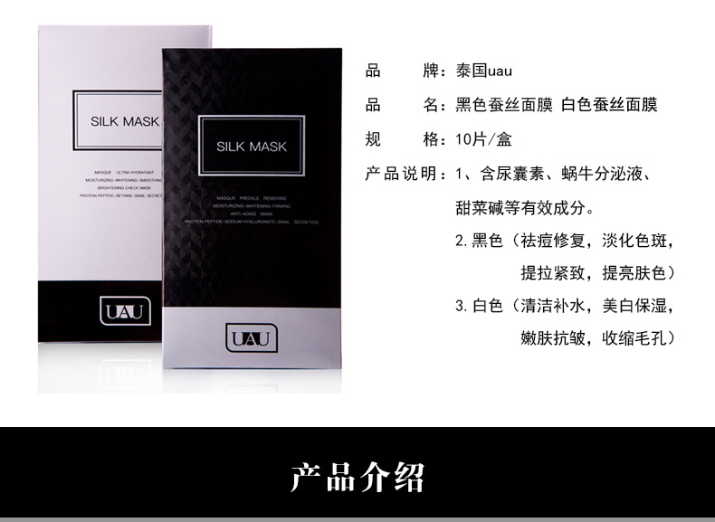 泰國(guó)uau蠶絲面膜黑色/白色蠶絲面膜10片 美白提亮修復(fù)祛痘 清潔補(bǔ)水嫩膚抗皺 |