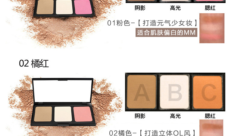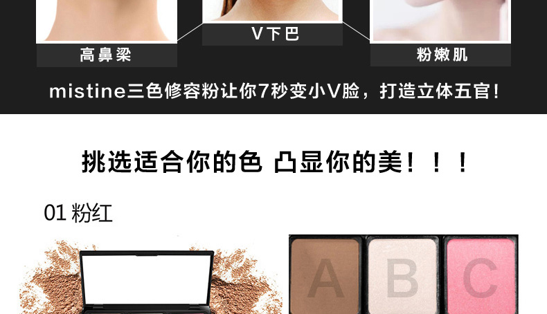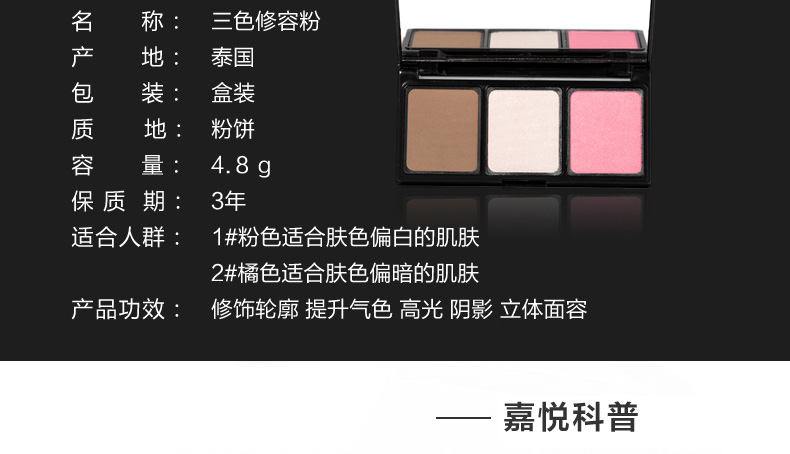 泰國Mistine美氏婷三色修容粉4.8g 修容遮瑕秒變V型臉 粉色/橘色 |
