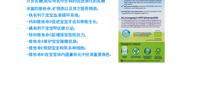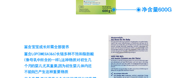 2盒裝喜寶Hipp有機奶粉PRE段600g 0-3個月嬰兒奶粉 口感清淡不上火—— 1、有機奶源,無激素和抗生素。 2、口感清淡不上火。 3、營養豐富,促進發育,增強免疫。 |