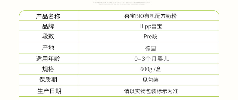2盒裝喜寶Hipp有機奶粉PRE段600g 0-3個月嬰兒奶粉 口感清淡不上火 |
