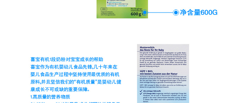 3盒裝喜寶Hipp有機奶粉1段600g 3-6個月寶寶奶粉 有機奶源口感清淡—— 1、促進身體發育,增強免疫力。 2、營養豐富,口感清淡不上火。 3、有機奶源,更安全更放心。 |