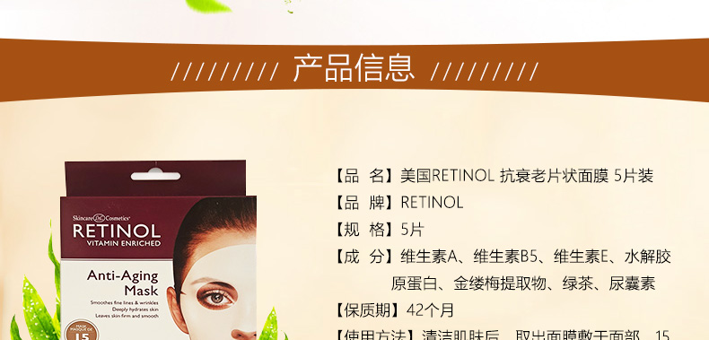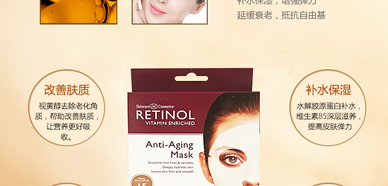 美國RETINOL抗衰老面膜5片 補水保濕去角質 延緩衰老改善膚質 |