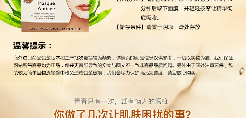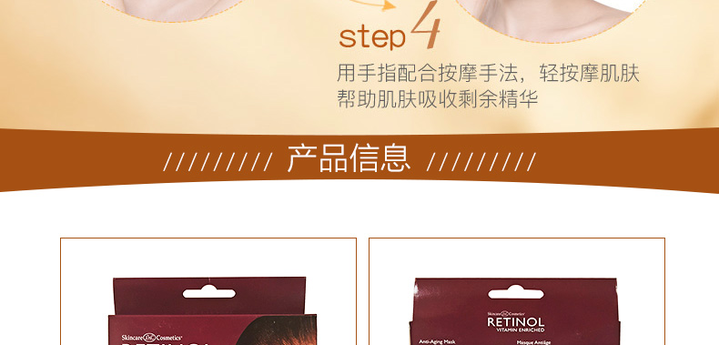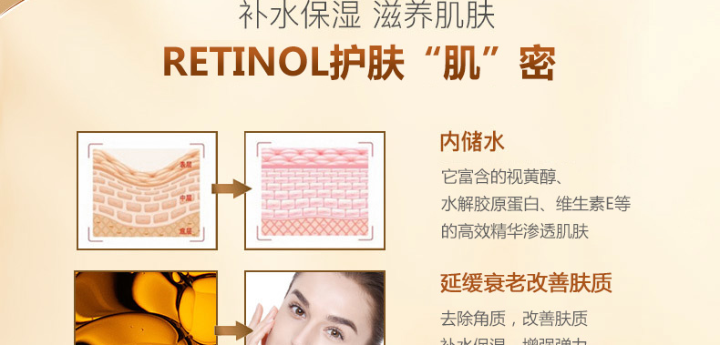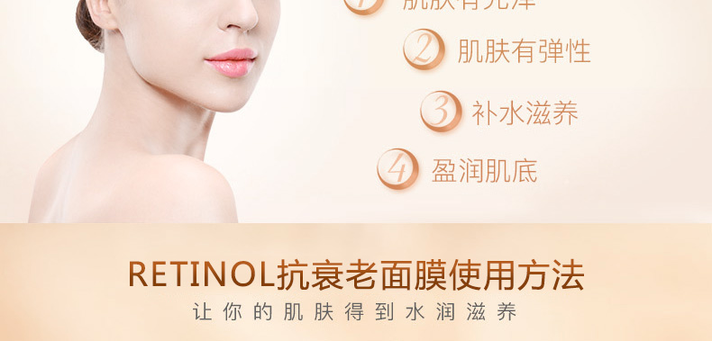 美國RETINOL抗衰老面膜5片 補水保濕去角質 延緩衰老改善膚質—— 1、含有視黃醇、水解膠原蛋白、維生素E等成分。 2、能夠去除老化角質,促進細胞生長,營養好吸收。 3、補水保濕,改善膚質,延緩衰老。 |