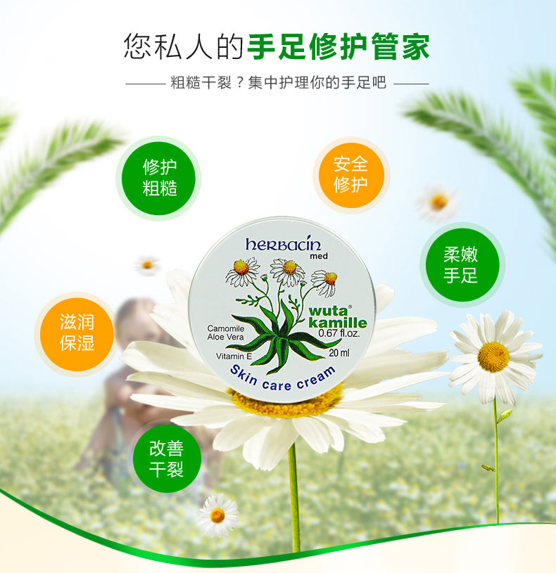 賀本清Herbacin小甘菊護手霜+手足龜裂修護霜組合20ML*2 滋潤保濕滋養修復 |