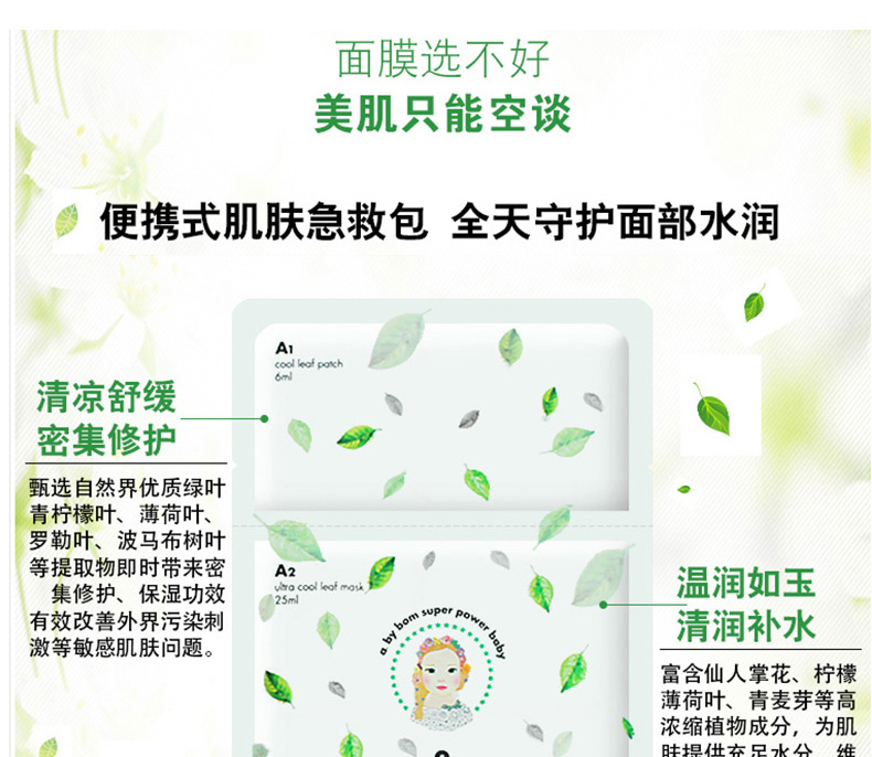 韓國A by Bom超能嬰兒葉子面膜10片 保濕舒緩平衡修護 |