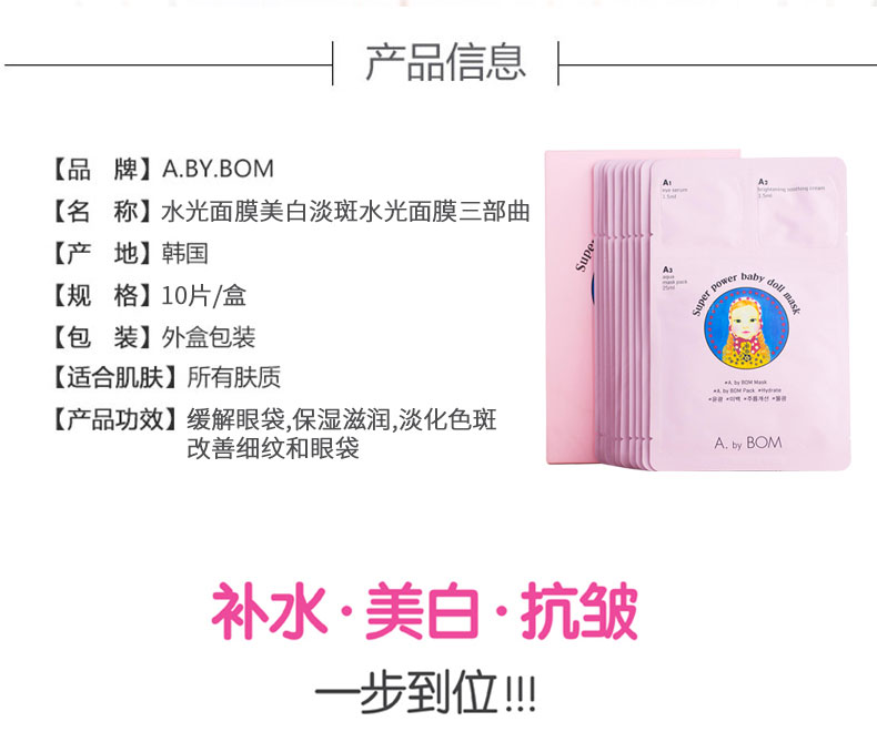 韓國A by Bom水光面膜美白淡斑水光面膜10片 眼霜+面霜+面膜三部曲 一盒/兩盒 |