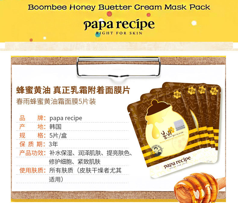 春雨papa recipe蜂蜜黃油面膜5片 滋養保濕 |