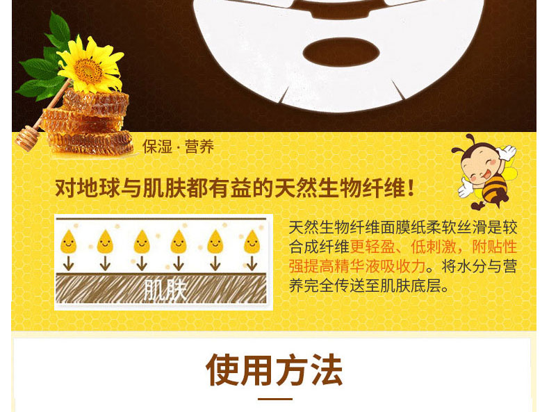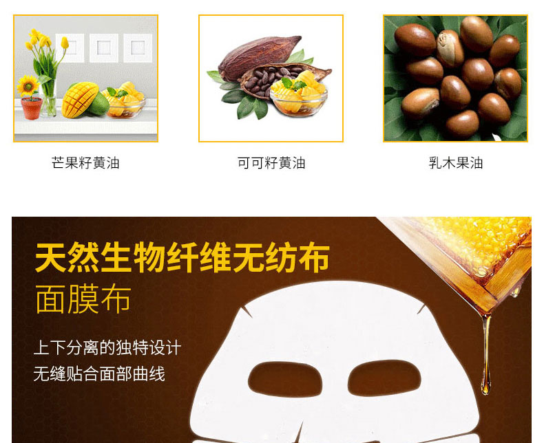 1、含有蜂蜜、蜂膠、蜂王漿和黃油等護膚成分。 2、滋養肌膚,補水保濕。 |