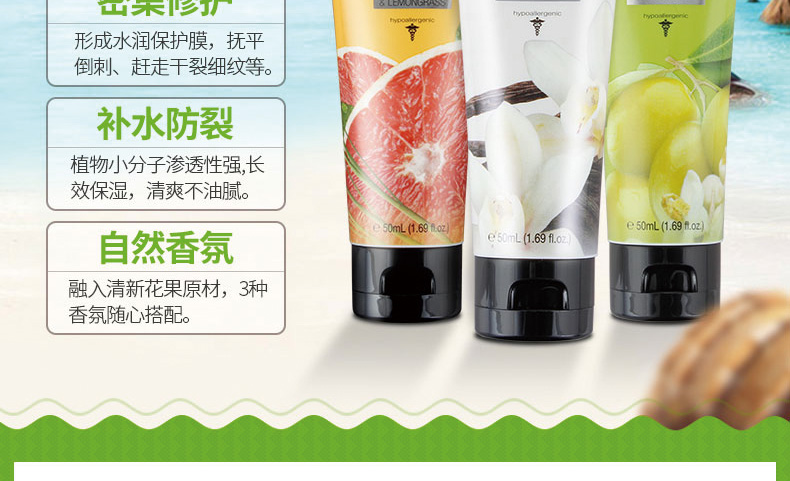 1、清爽滋潤,嫩白潤滑。 2、清新香味,軟化角質(zhì)。 3、粉紅葡萄柚/橄欖油 /絲滑香草三部曲,全面護理。 |