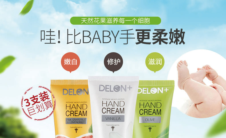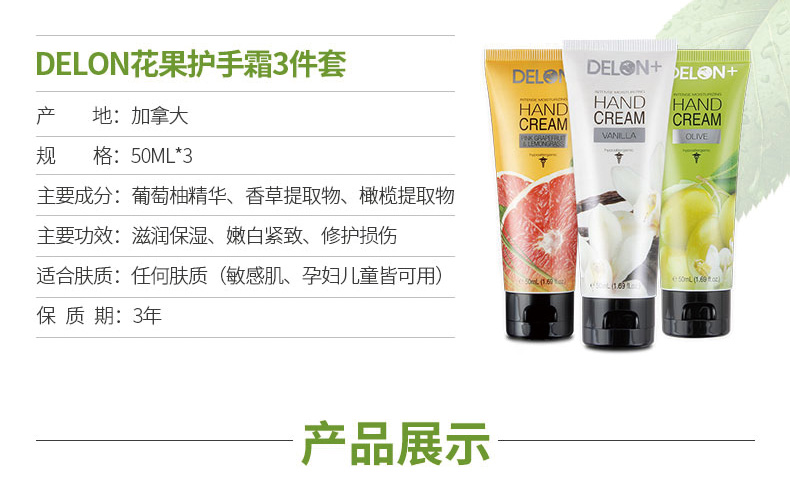 Delon手霜三支裝(橄欖+葡萄柚+香草) |