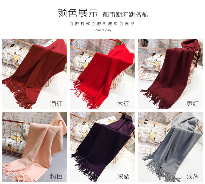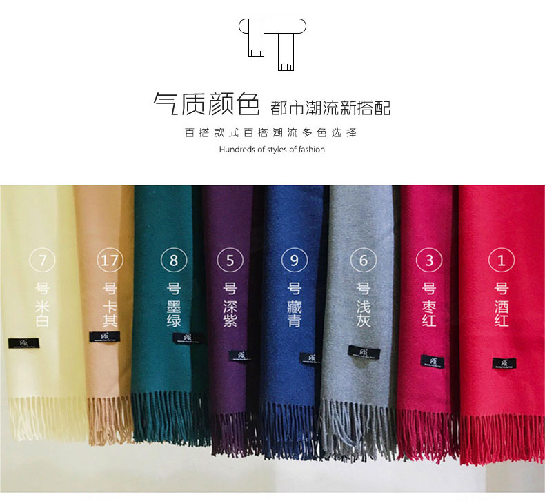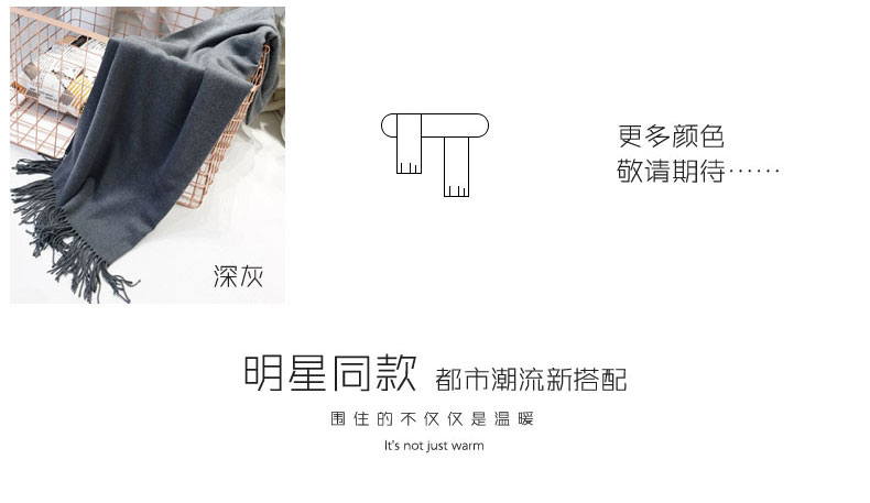 1、羊毛圍巾,舒適溫暖。 2、細膩質感,親膚柔軟。 3、純色系列,簡單不失大氣。 |