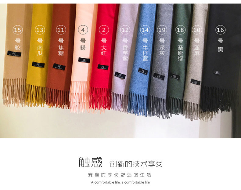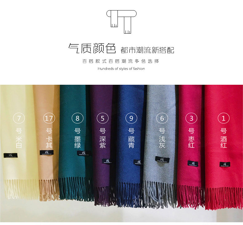 1、羊毛圍巾,舒適溫暖。 2、百搭又好看。 3、純色系列,簡(jiǎn)單不失大氣。 |
