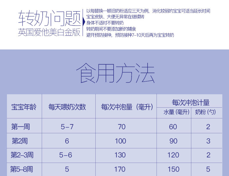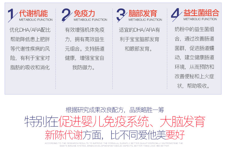 1、高端品質,營養升級。 2、包裝罐的設計方便易保存。 3、優質的奶源,嚴格的檢測。 |