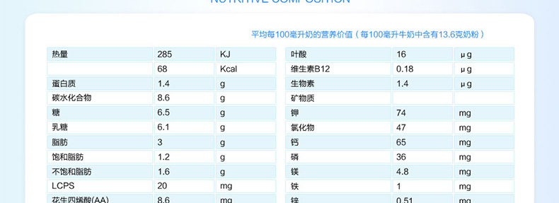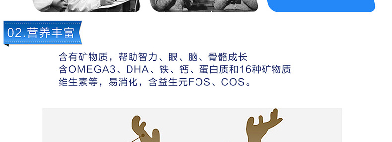 1、高端品質(zhì),營養(yǎng)升級。 2、包裝罐的設計方便易保存。 3、優(yōu)質(zhì)的奶源,嚴格的檢測。 |