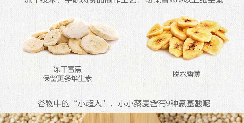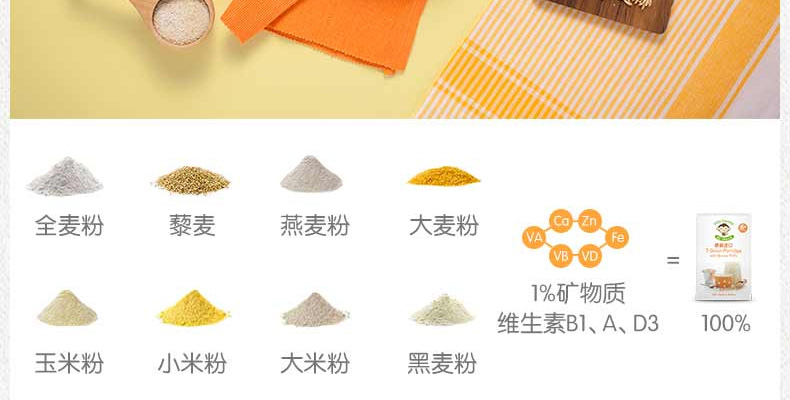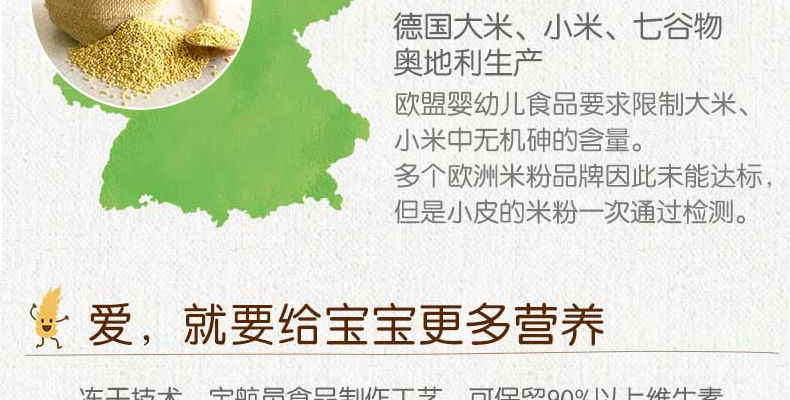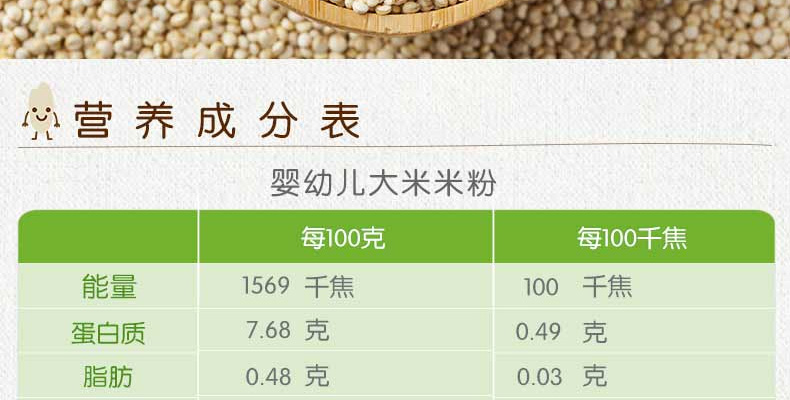 1、大米:適合寶寶初期食用 2、藜麥:給長牙寶寶大顆粒米粉 3、天然食物,無添加。 |