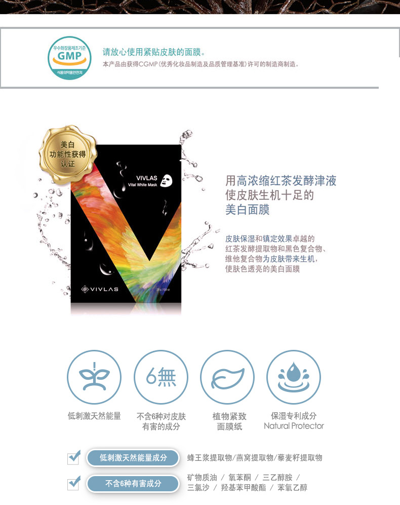 VIVLAS/唯蘭頌茶秘亮白煥活面膜(美白)5片/盒 |