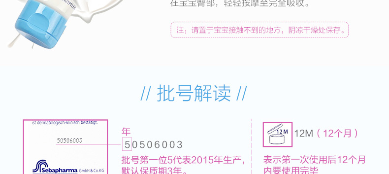1、主要成分4%泛醇,甜杏仁油,霍霍巴油,鱷梨油和牛油樹脂 2、不含香料、石蠟、硅油、染料和PEG等成分 3、對過敏、尿布疹、濕疹有明顯效果 |