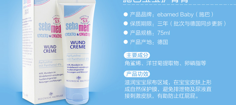 德國Sebamed施巴嬰兒護(hù)臀霜 75ml/瓶 |