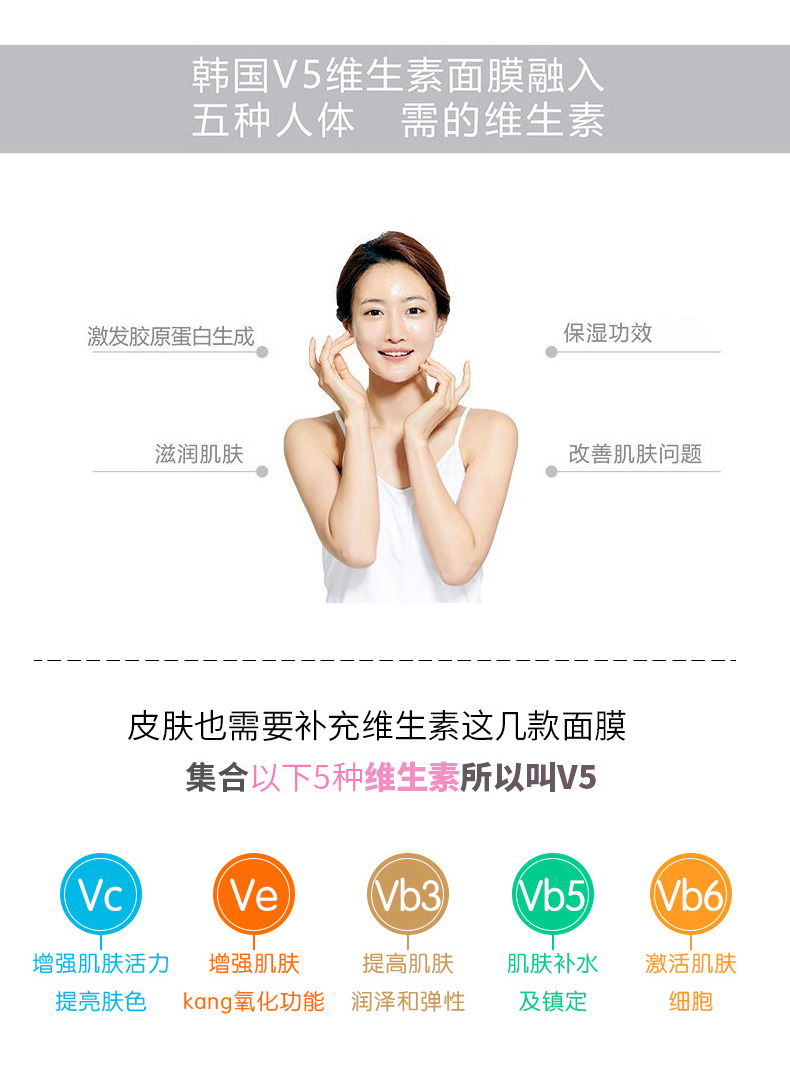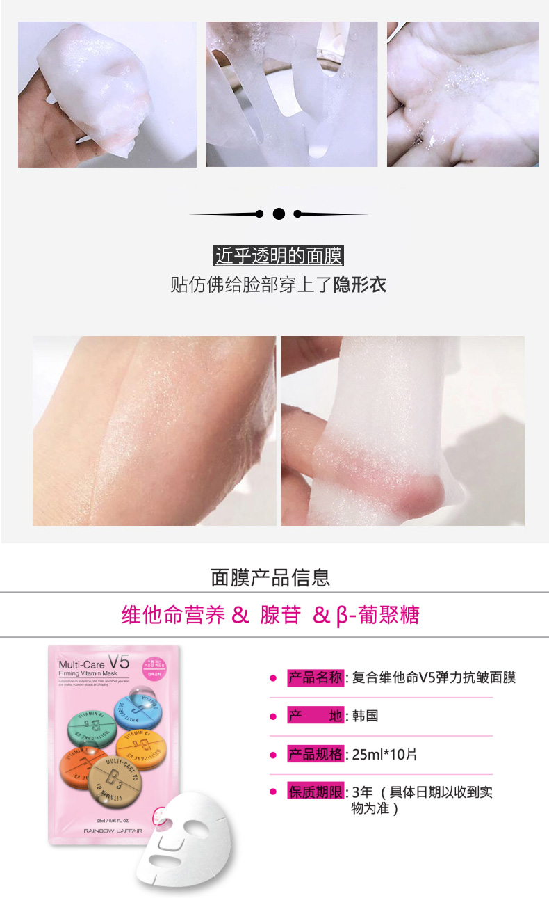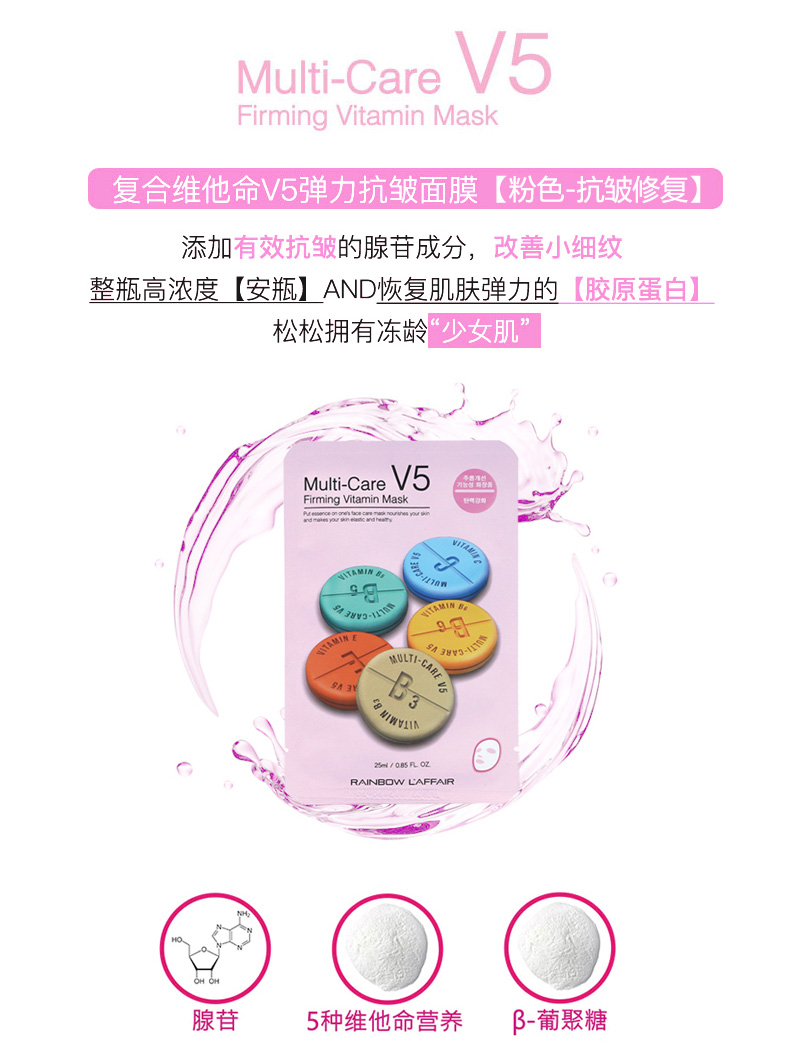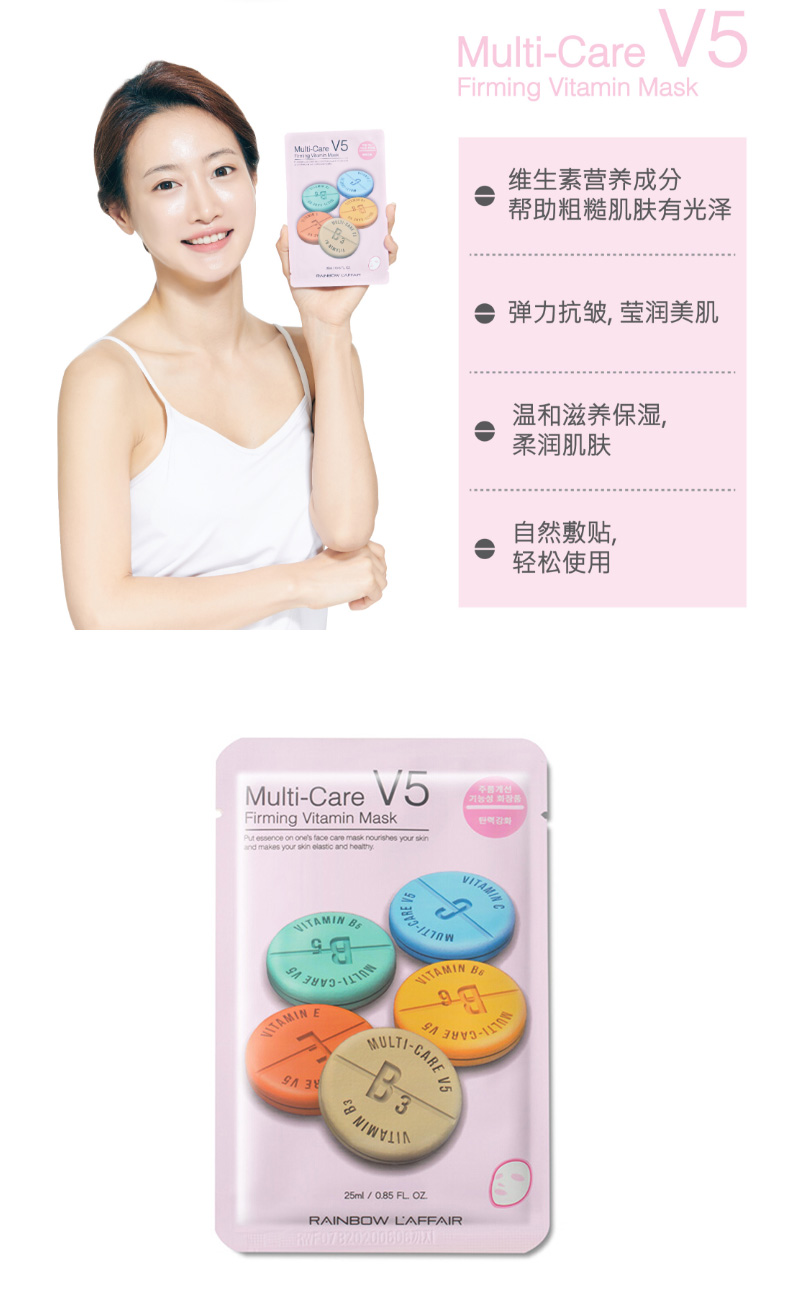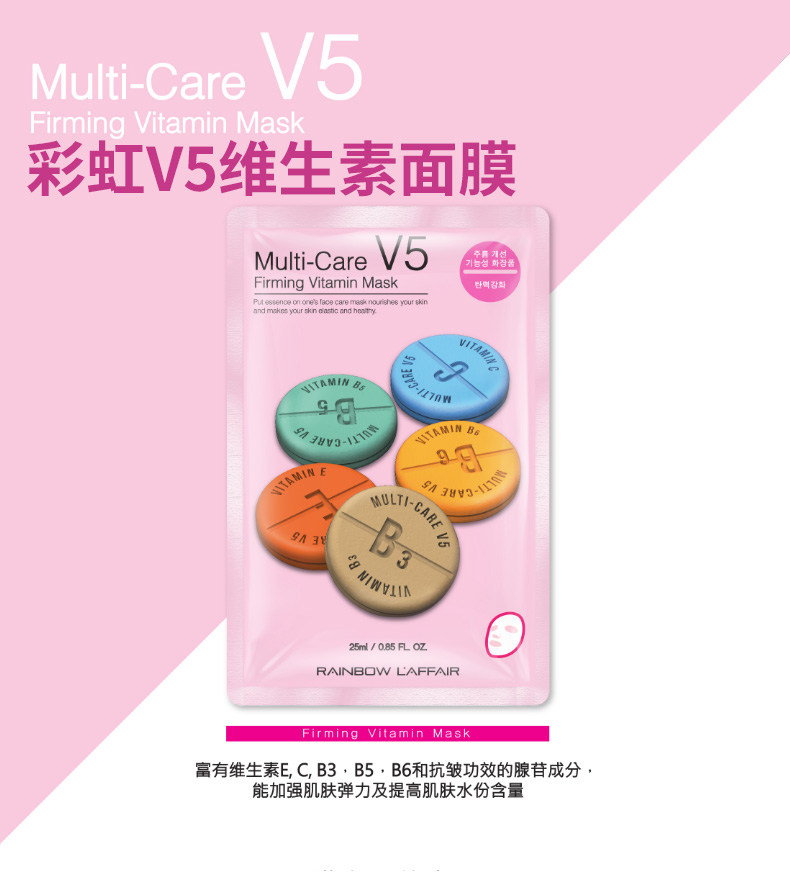 韓國(guó)Rainbow彩虹V5維生素面膜緊致抗皺面膜 粉色 |
