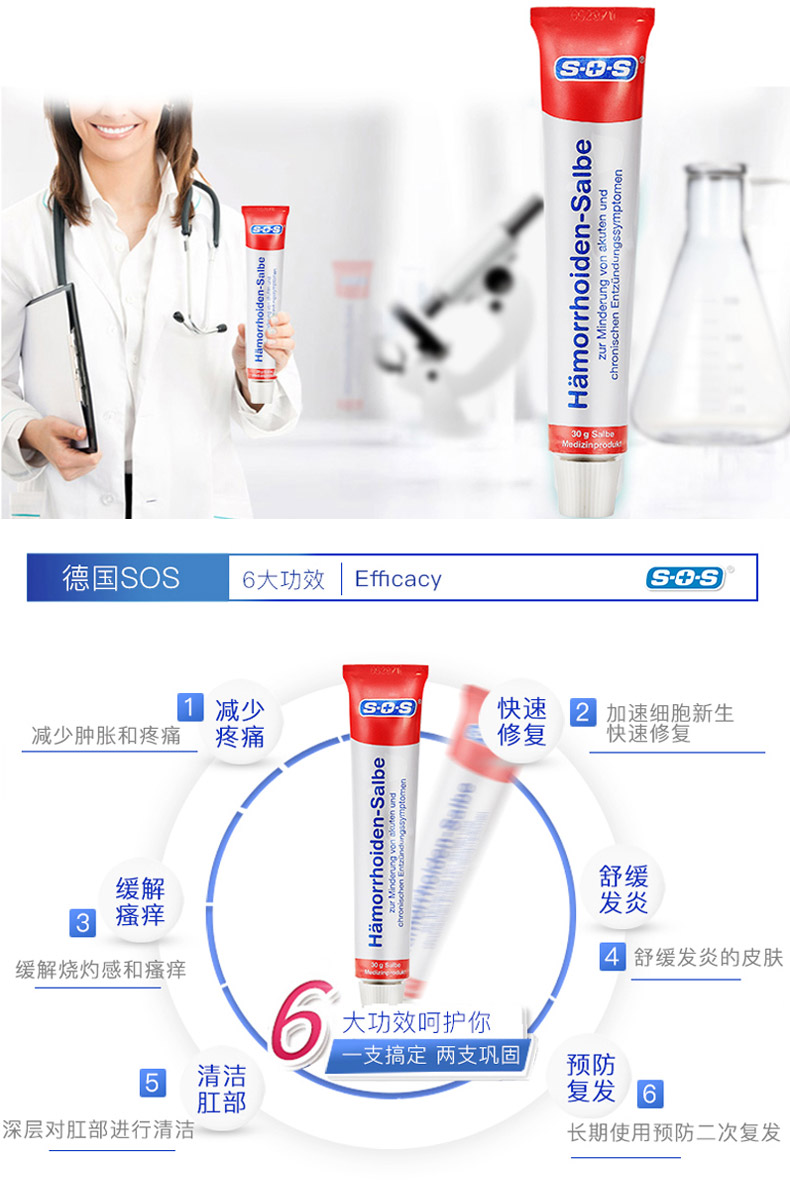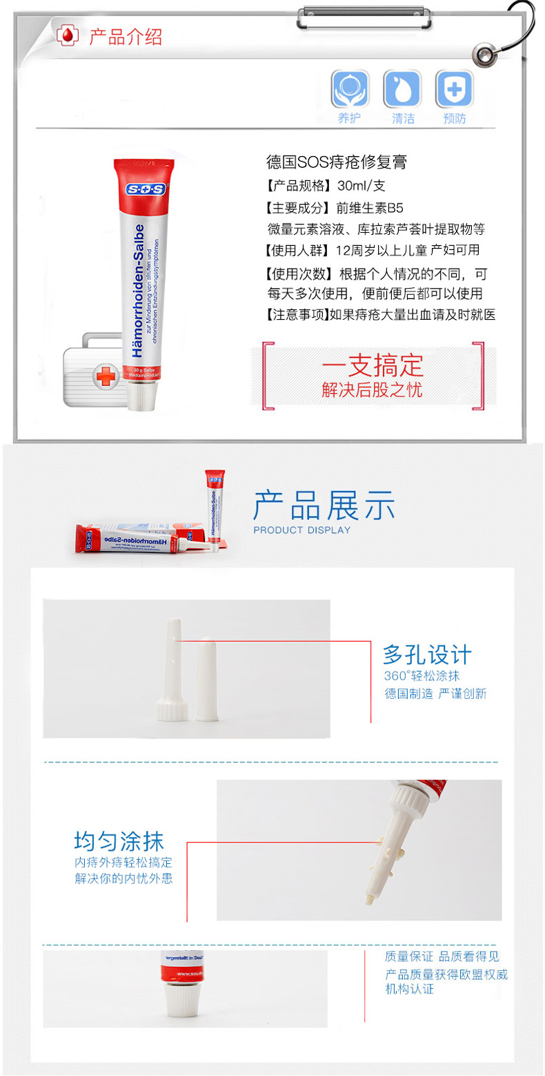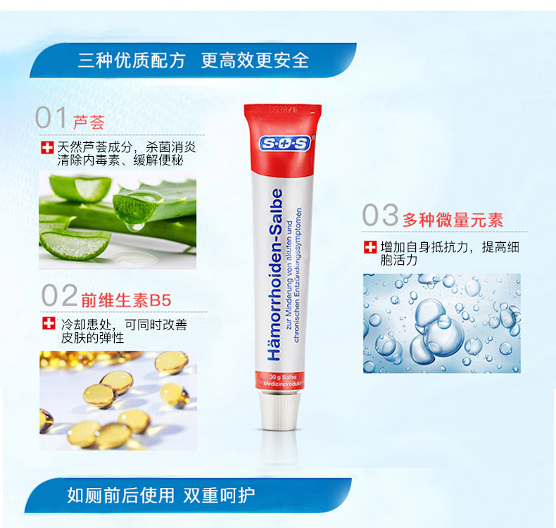 德國SOS天然高效痔瘡膏30ml 斷根內痔外痔混合痣肛裂藥膏非澳洲 孕婦可用 |