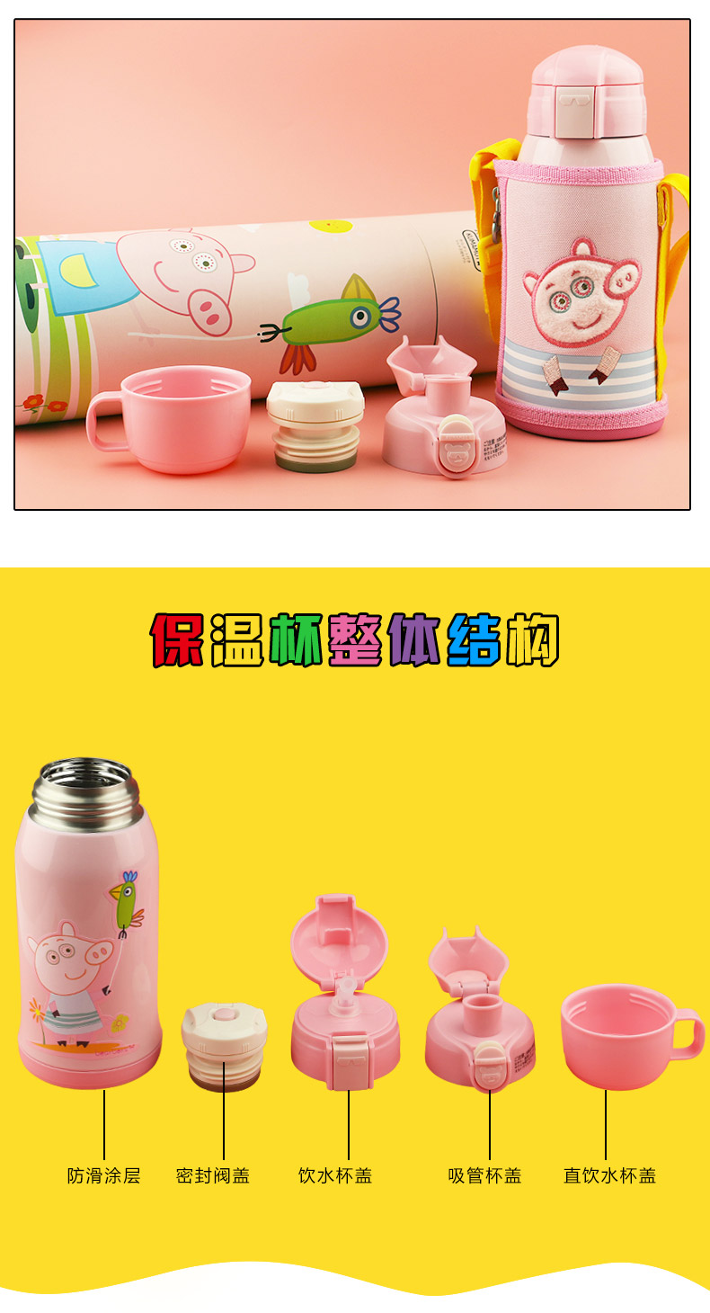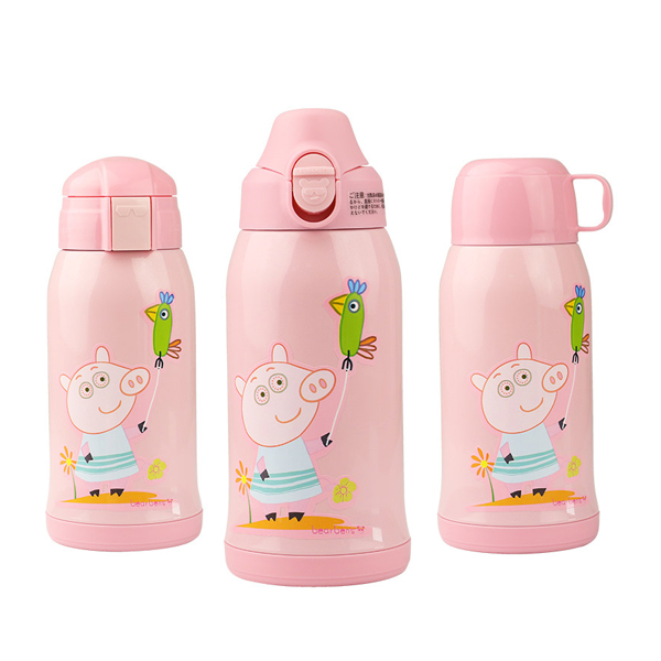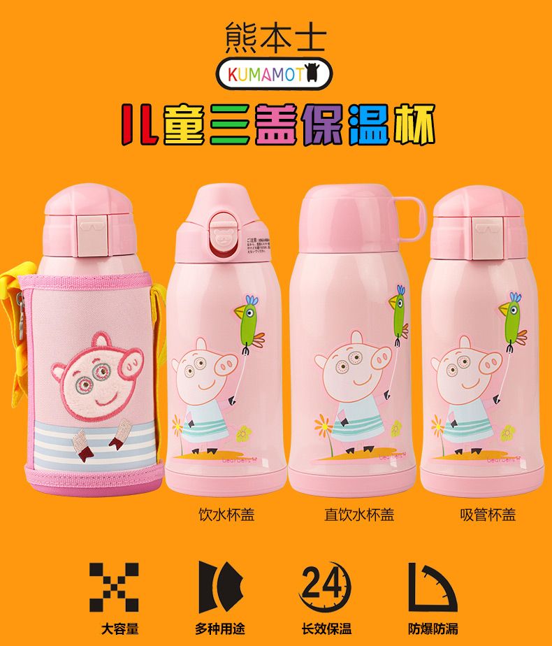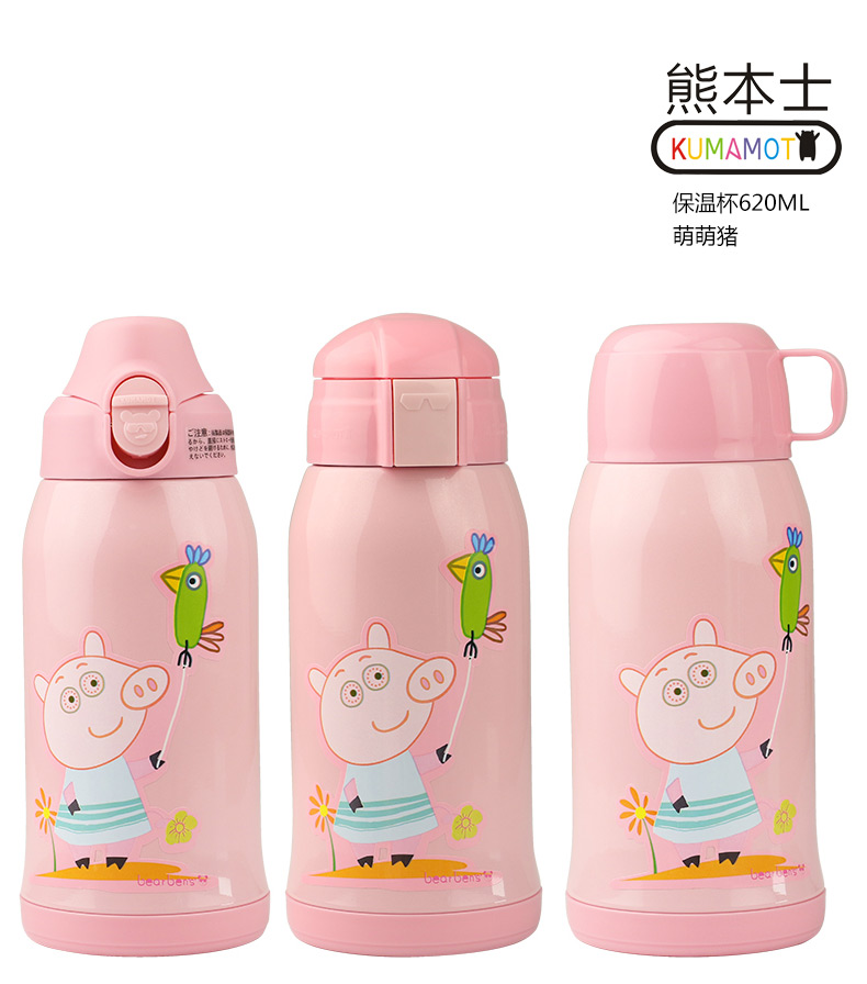 日本熊本士兒童保溫杯帶吸管兩用水壺寶寶 316三蓋兒童杯粉豬小妹 |