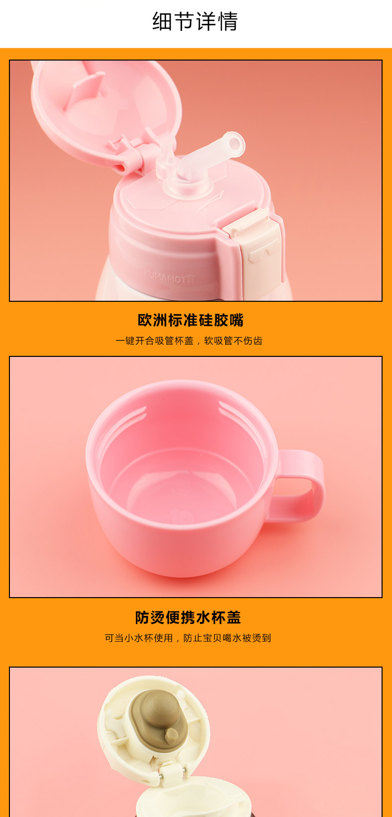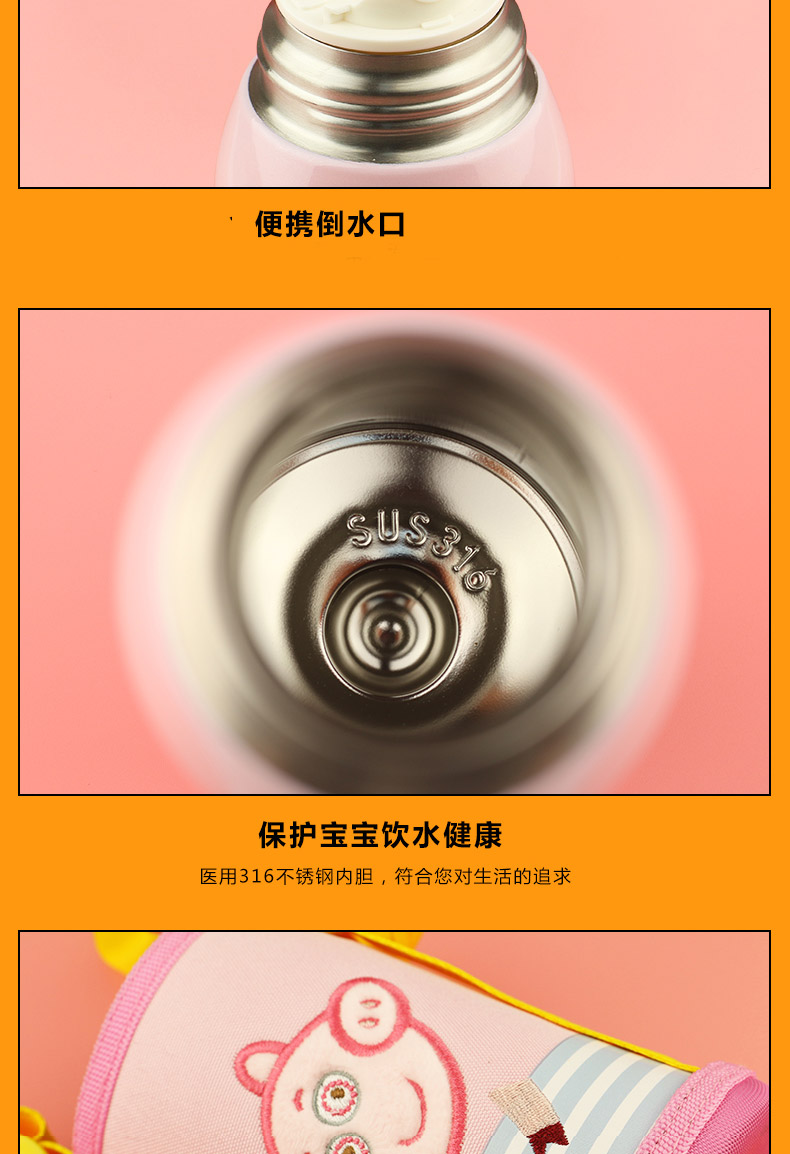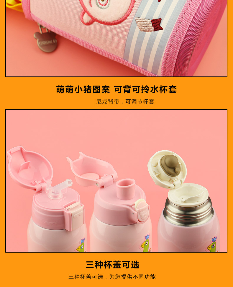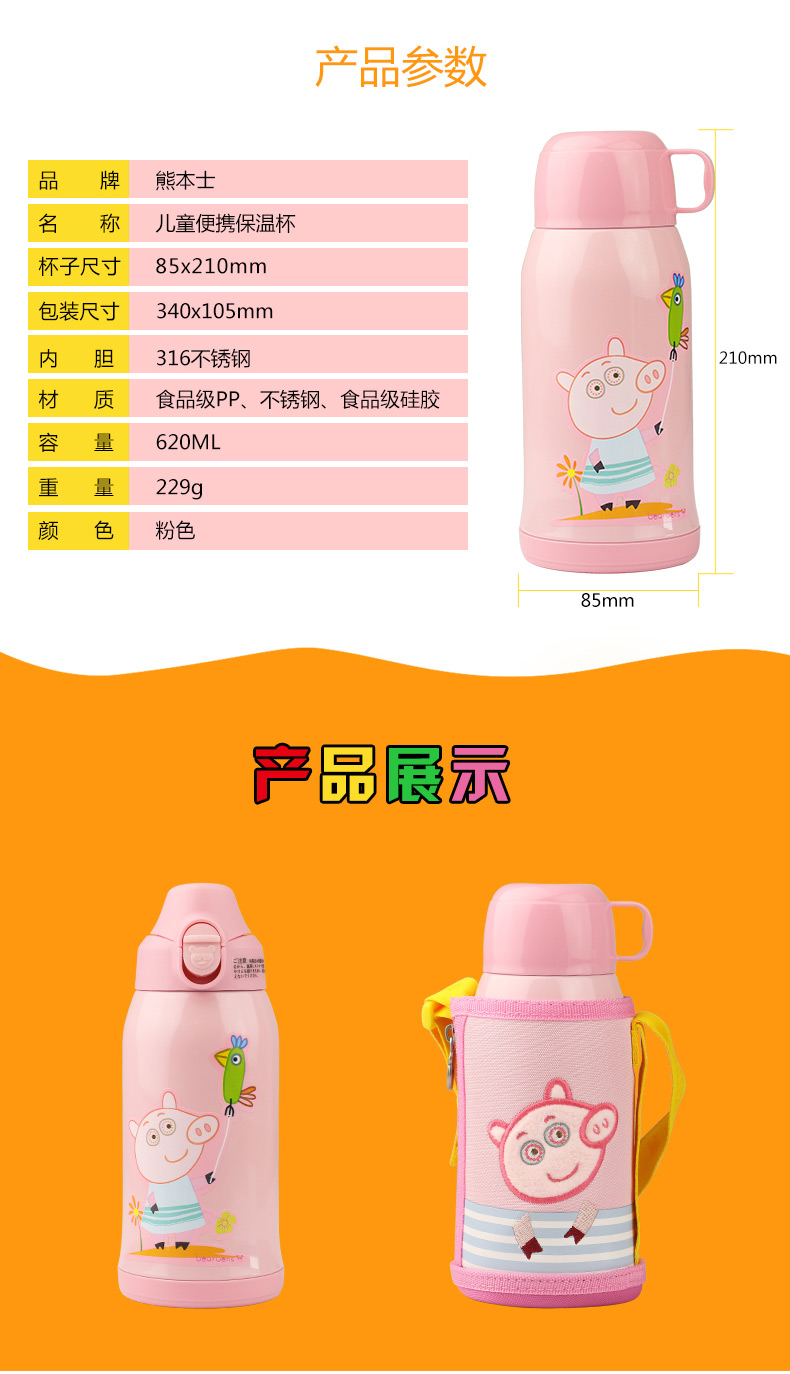 日本熊本士兒童保溫杯帶吸管兩用水壺寶寶 316三蓋兒童杯粉豬小妹 |