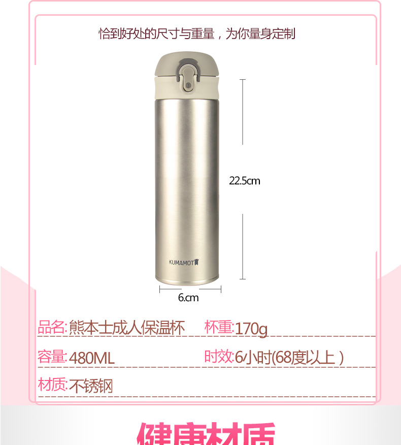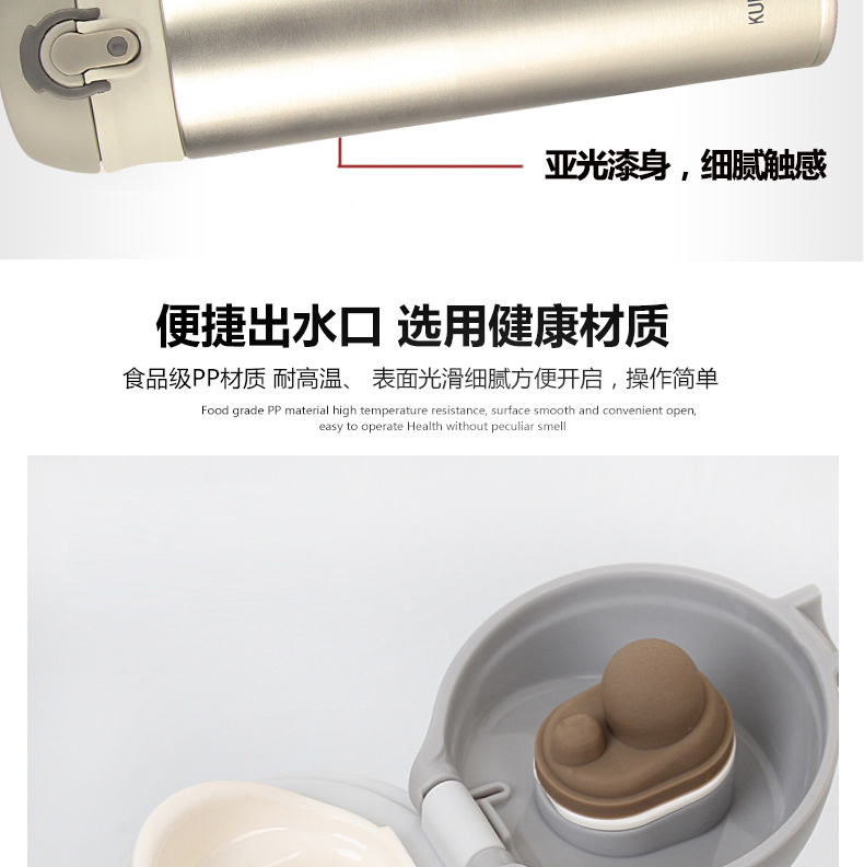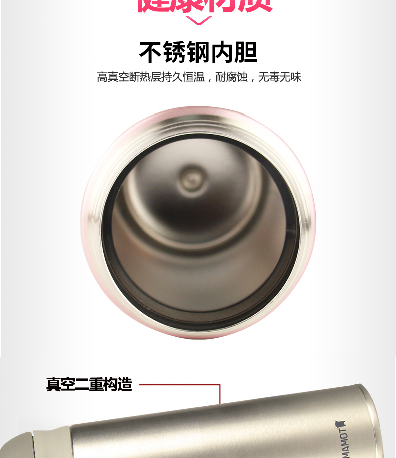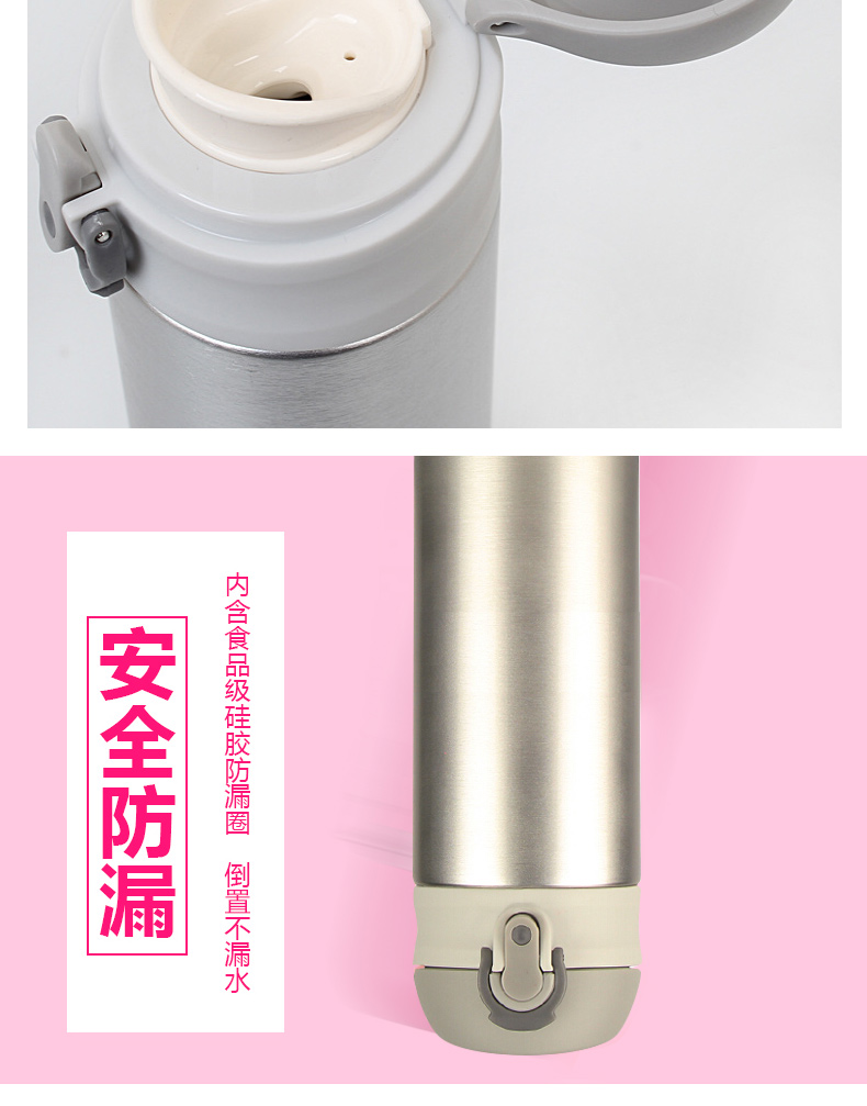1、雙層保護,密封防漏。 2、持久恒溫,造型美觀。 3、一鍵開啟,攜帶方便。 |