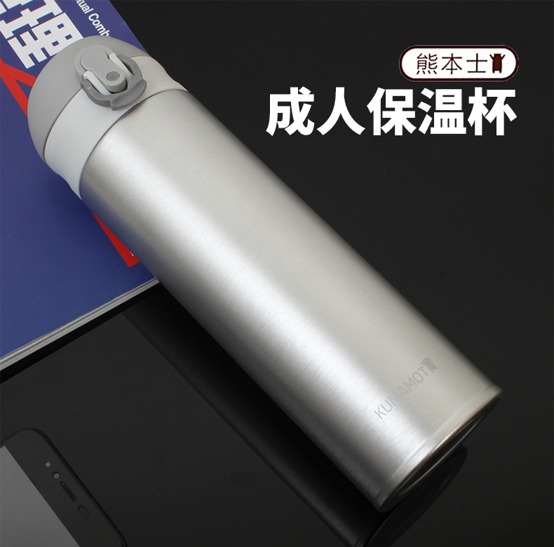 日本熊本士保溫杯成人杯氣質銀色 男女便攜水壺商務直身杯子 |