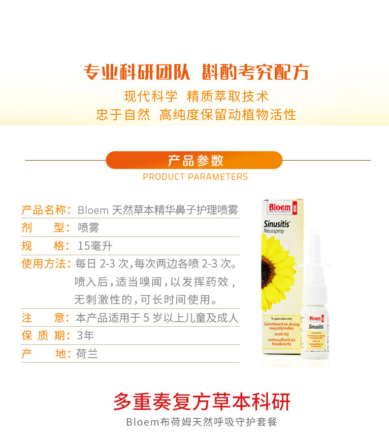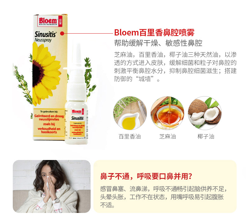 荷蘭布荷姆Bloem鼻子鼻腔護理噴霧成人兒童霧霾清潔鼻腔舒緩噴劑15ml |