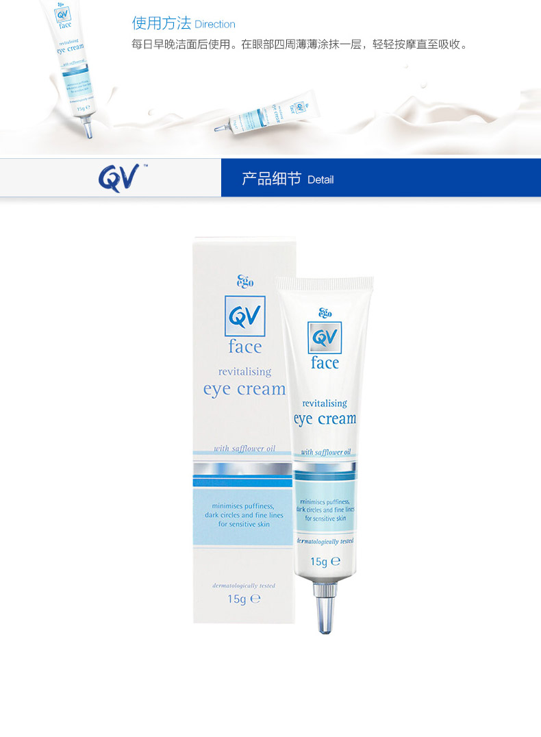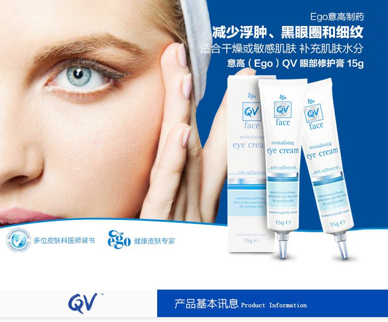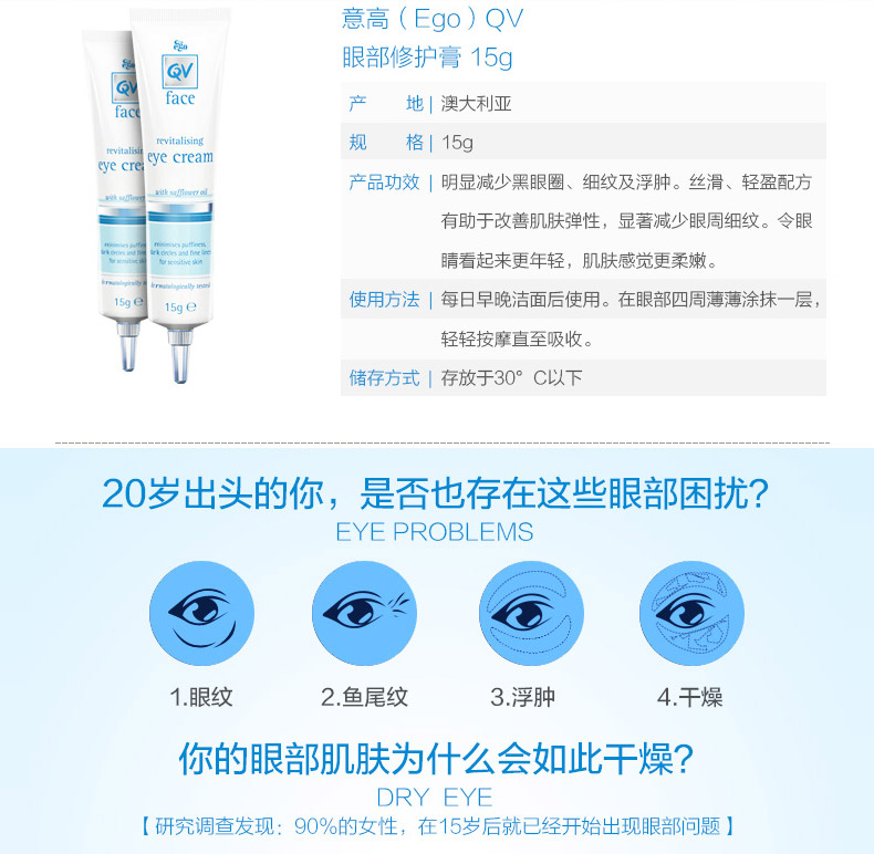 意高(Ego)QV面部系列 眼部修護(hù)膏 溫和補(bǔ)水保濕緊致滋潤眼霜 15g |