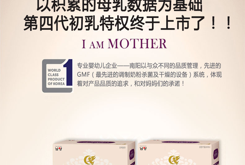 韓國直郵[南陽奶粉]我是媽媽/小袋包裝 4段 14g*20包 1盒 適合1~2歲的寶寶—— ①含有免疫成分slga,成長因子IGF,促進(jìn)細(xì)胞成長的EGF及TGF-β等可促進(jìn)成長,提高免疫力。 ②南陽乳業(yè)特許成分GP-C(Growth Protein-Colostrum),能使成骨細(xì)胞機(jī)能活性化,增大牙骨細(xì)胞,有助于骨骼的形成和生長。 ③在韓國國內(nèi)唯一使用天然DHA愛恩斯坦原乳,有助于提高嬰兒大腦的發(fā)育。 ④適合出生1~2歲的寶寶 |
