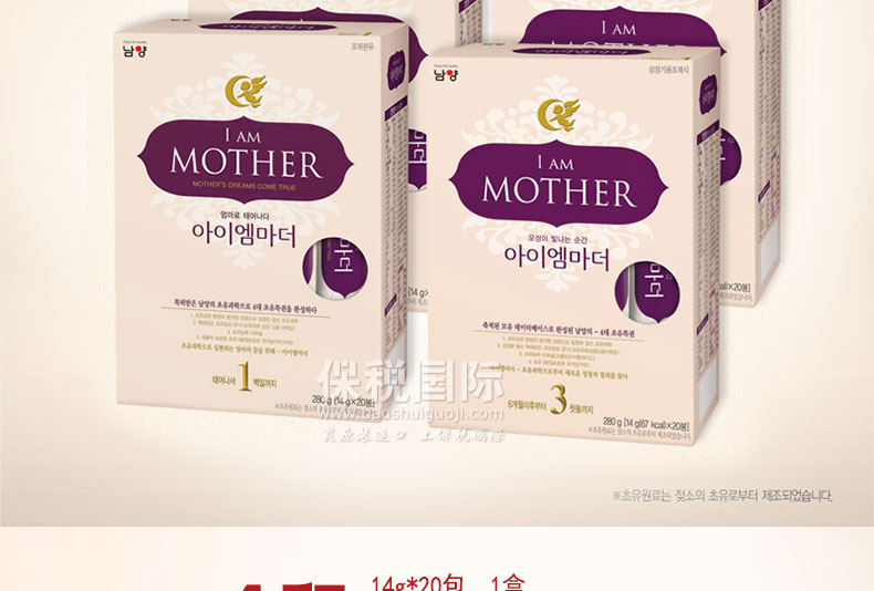 ![韓國直郵[南陽奶粉]我是媽媽/小袋包裝 1段 共3盒(14g*20包/盒) 適合0~100天大的寶寶](http://img.baoshuiguoji.com/image/7f8632709fec8b45e50a054b11c9e1ae.jpg)