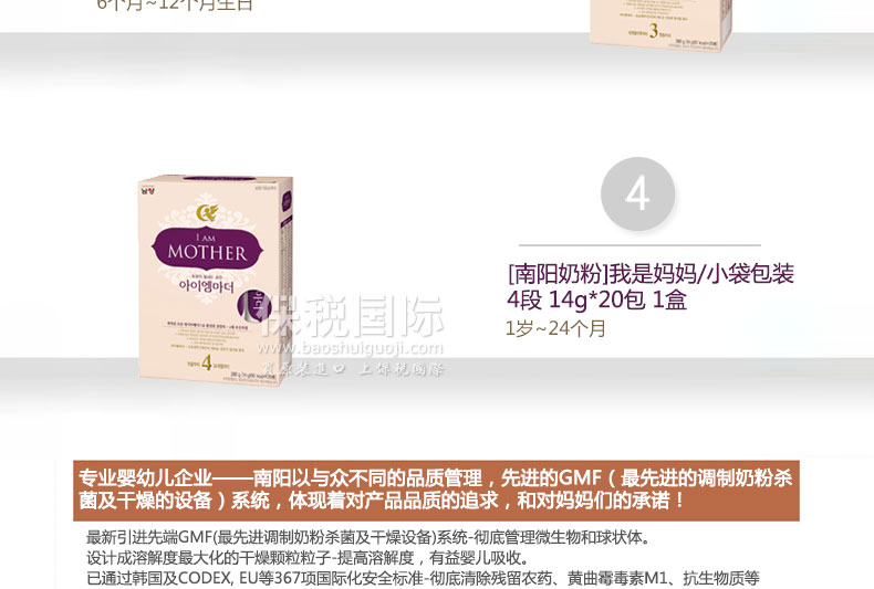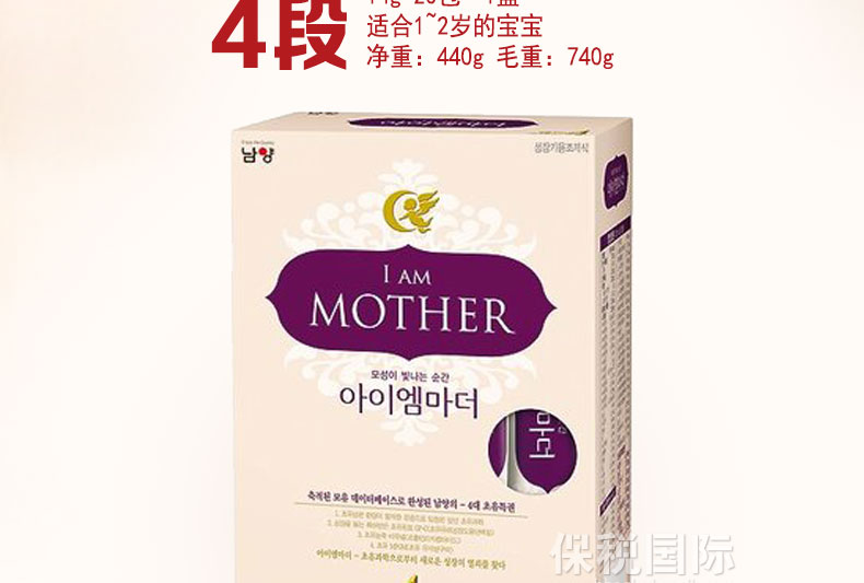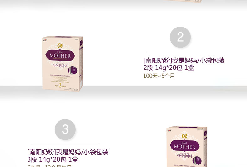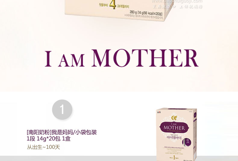 ![韓國直郵[南陽奶粉]我是媽媽/小袋包裝 2段 14g*20包 1盒 適合100天~5個(gè)月大的寶寶](http://img.baoshuiguoji.com/image/066f076ed88f4b95acc7b3543b70886f.jpg)