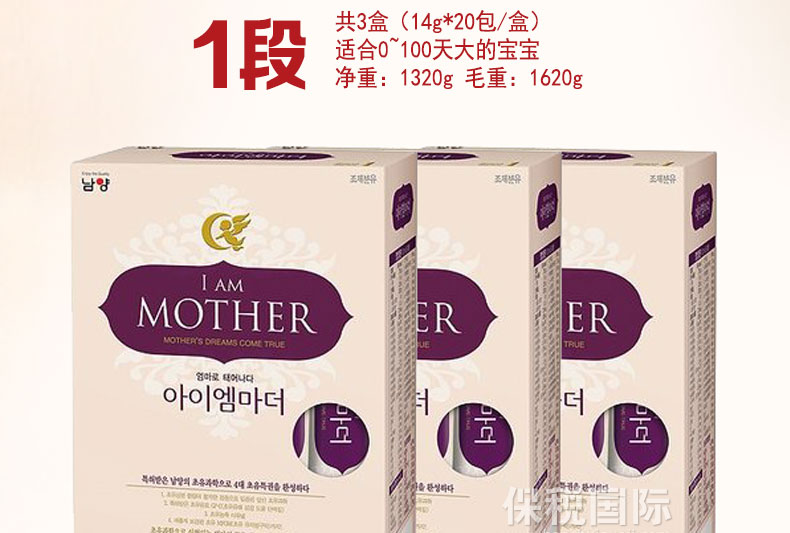![韓國直郵[南陽奶粉]我是媽媽/小袋包裝 1段 共3盒(14g*20包/盒) 適合0~100天大的寶寶](http://img.baoshuiguoji.com/image/7f8632709fec8b45e50a054b11c9e1ae.jpg)