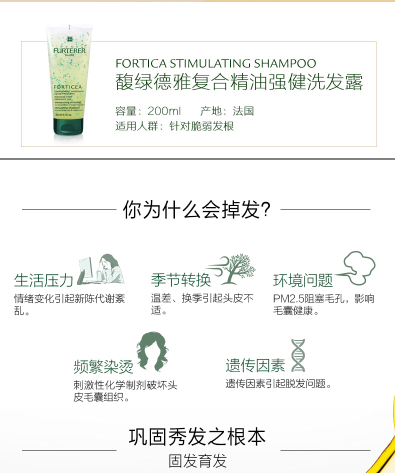 法國馥綠德雅防脫洗發水 無硅油防脫發200ml |