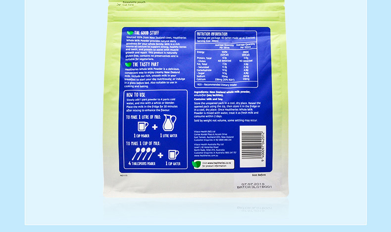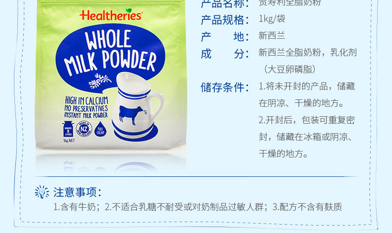 Healtheries賀壽利高鈣全脂成人奶粉1KG |