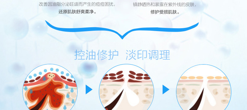 1、深層清潔 2、舒緩修護,淡印調理。 3、調節水油。 |
