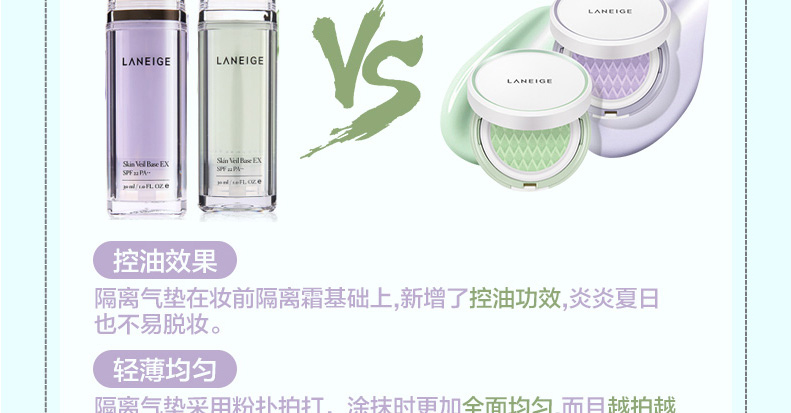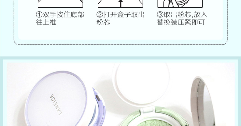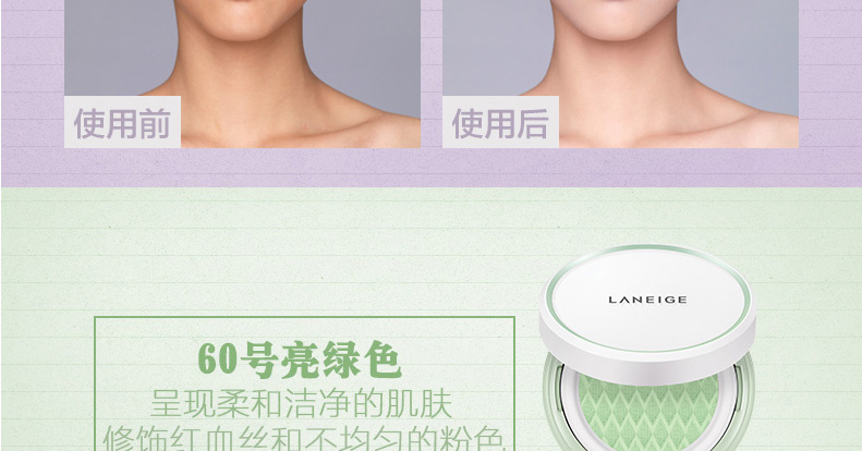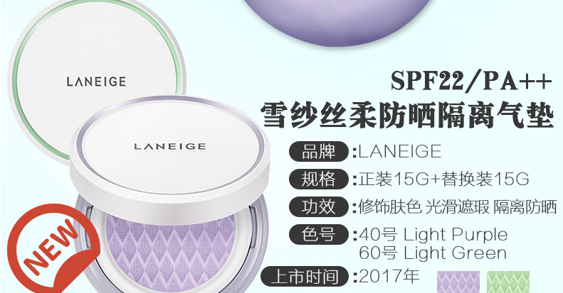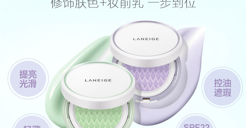 韓國 蘭芝(LΛNEIGE)氣墊隔離霜雪紗防曬霜(綠色+替換裝)SPF22 PA++ 15g*2 |
