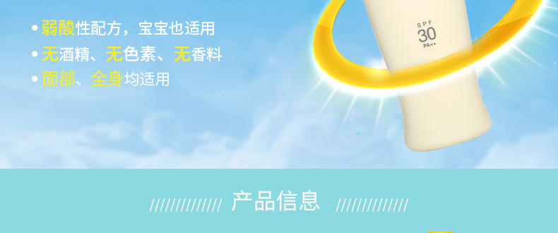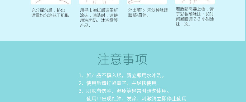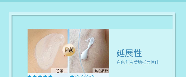 1、輕透不厚重 2、含透明防曬粉末,不易有白色殘留,不易泛白。 3、SPF30+減輕紫外線對肌膚的傷害,流汗后仍滑爽。 |