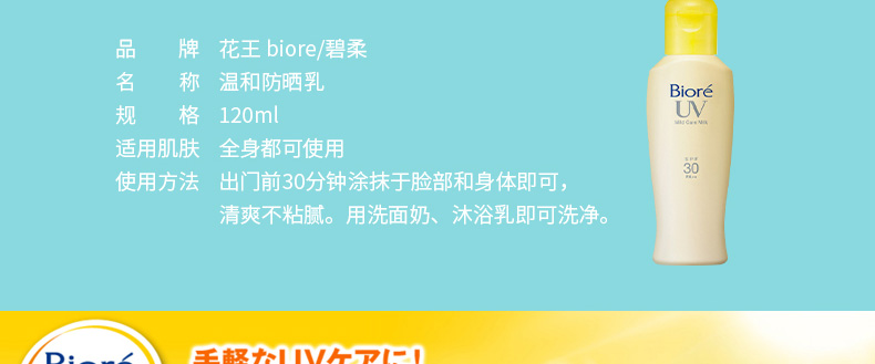 Biore/碧柔 溫和防曬乳 SPF30+ 120ml |